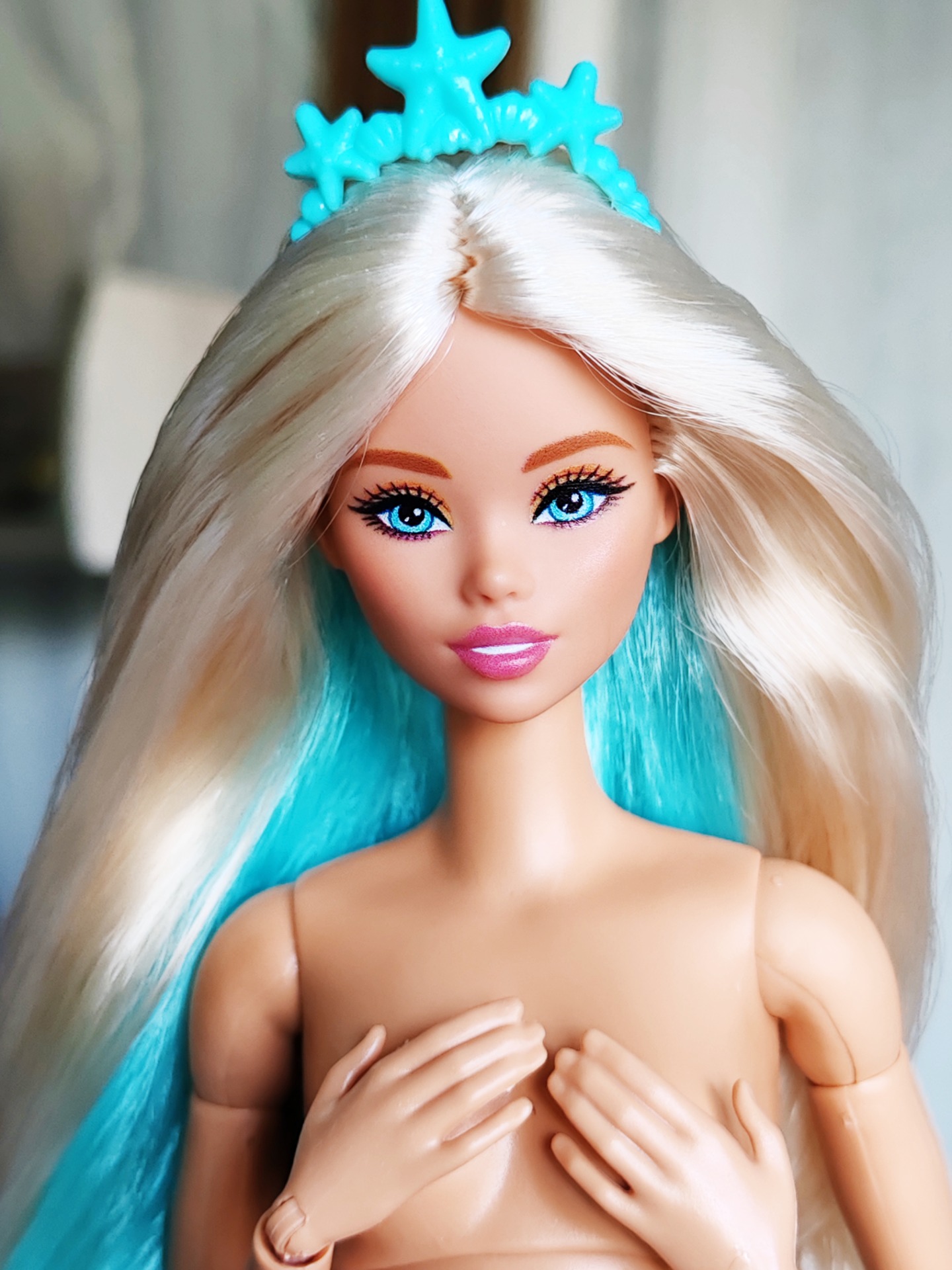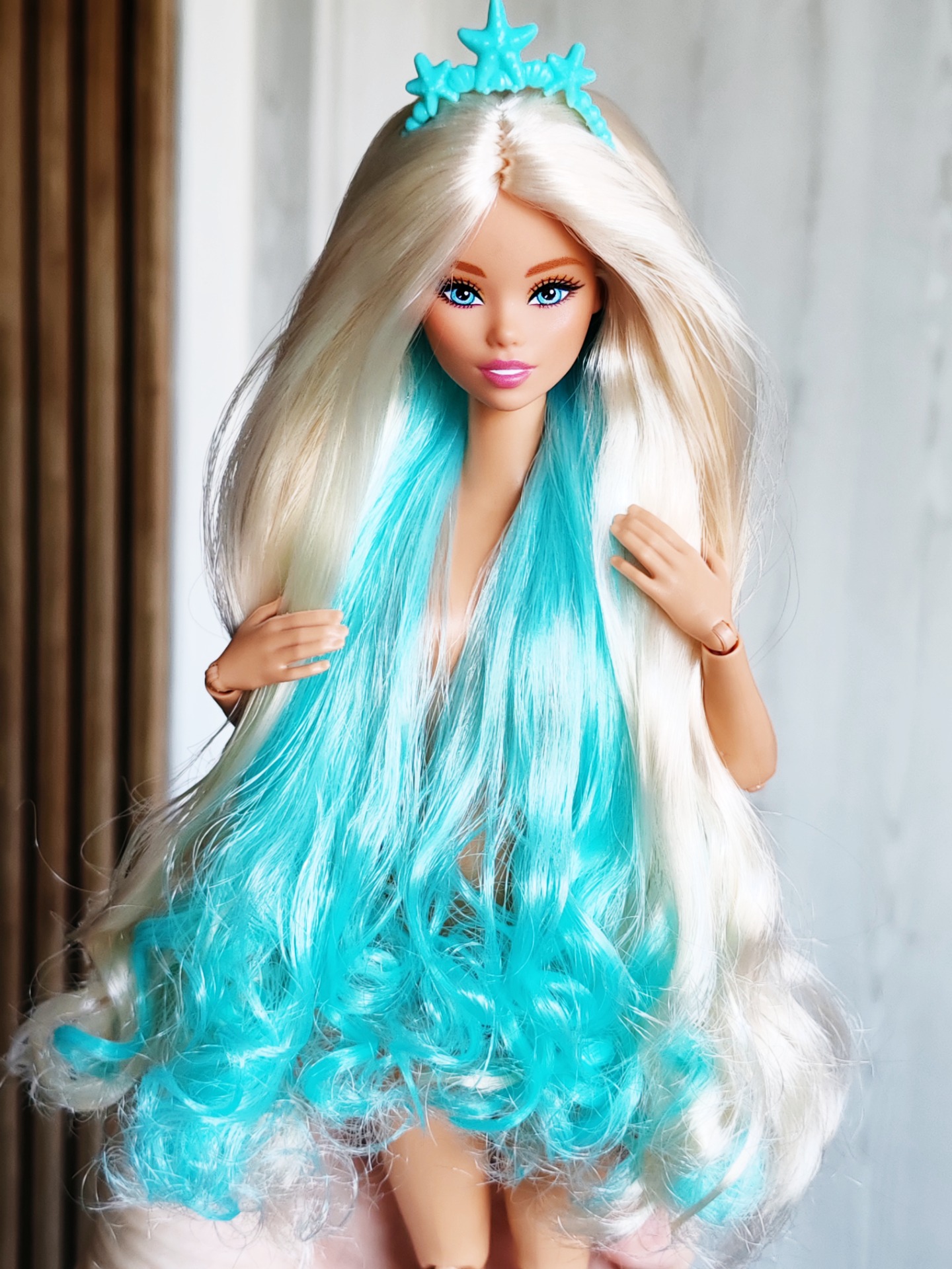 Převlasená OOAK panenka Barbie - facemold Odile, původně mermaid.