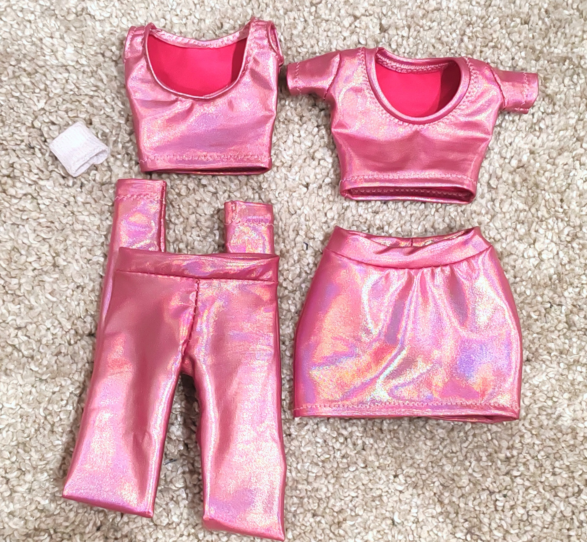1x legíny1x crop-tílko1x sukně1x crop-top1x bílé potítko