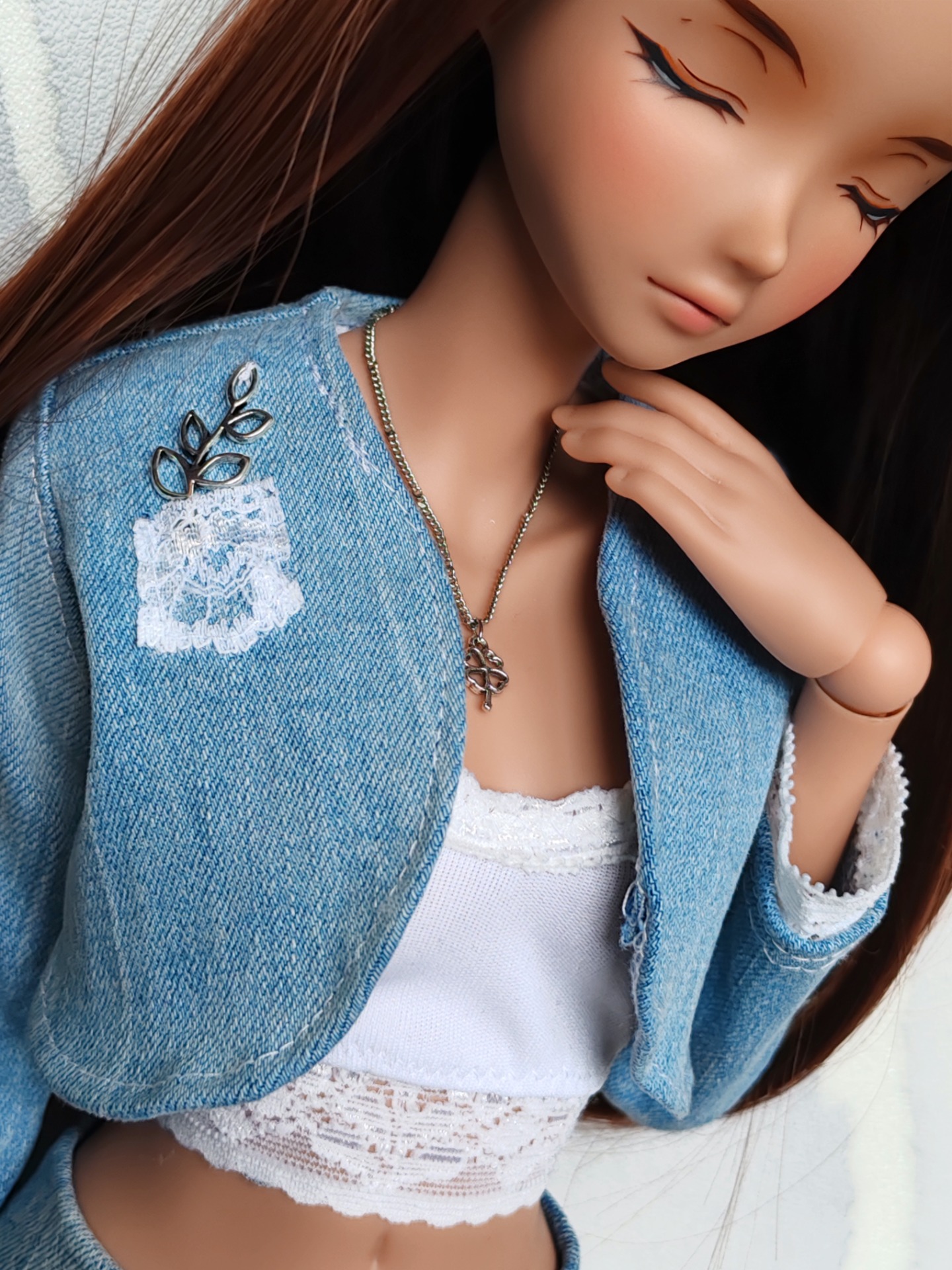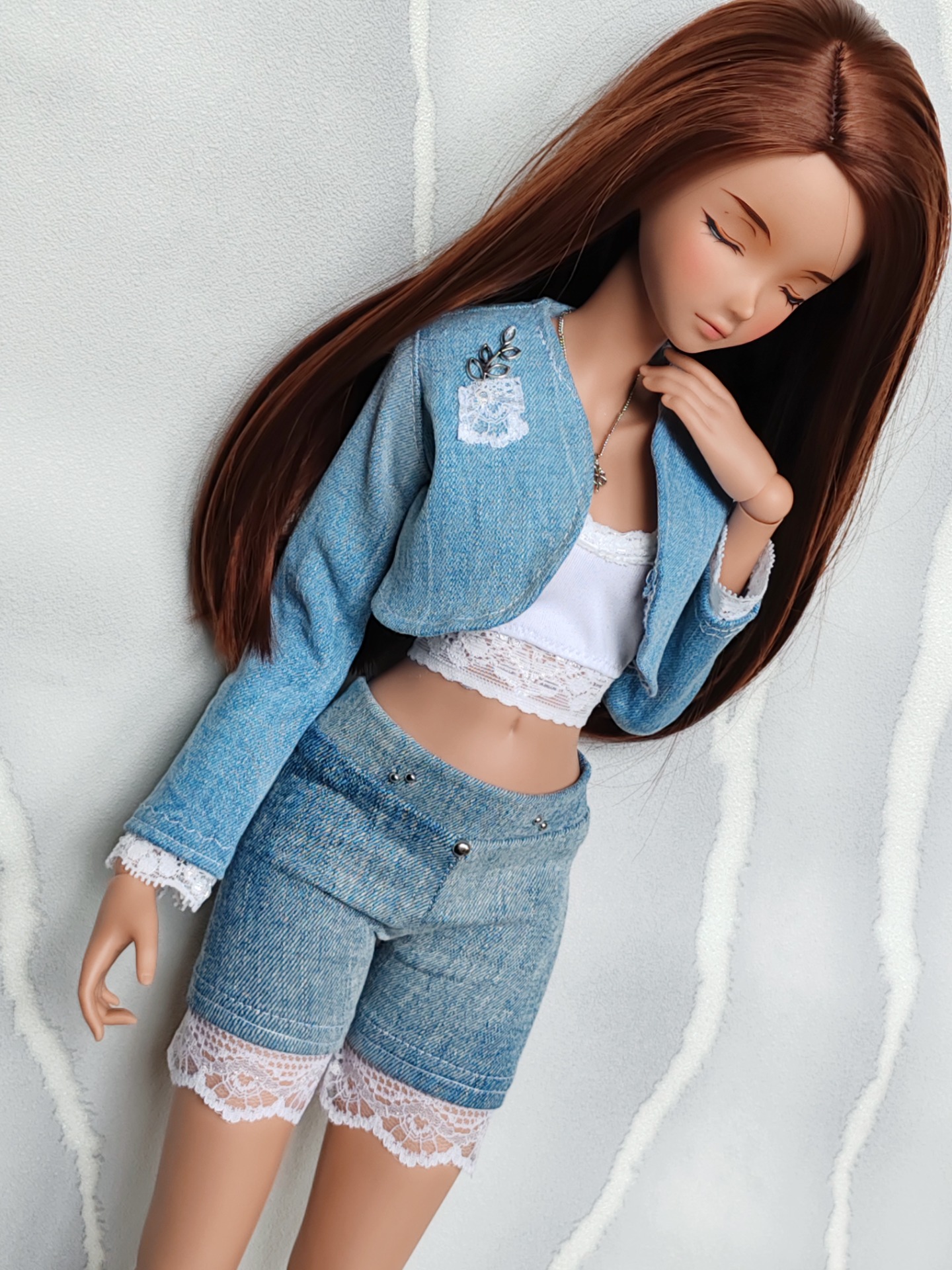 Set oblečení (tričko, kraťasy, bolerko) pro panenky velikosti 60cm. (1:3)